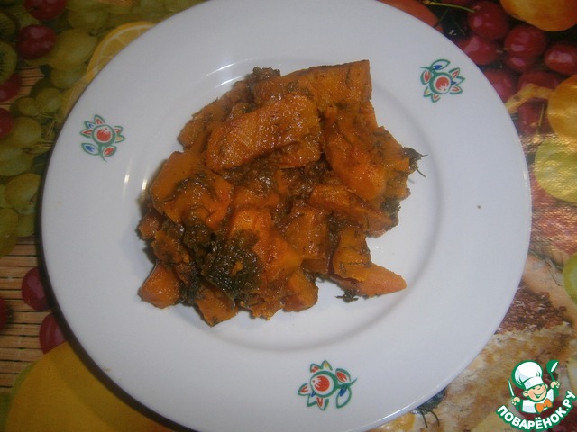 только соус у меня жидковат, не хватило терпения ждать. Я жареную тыкву немного в этом соусе потушила, так она еще больше им "прониклась".