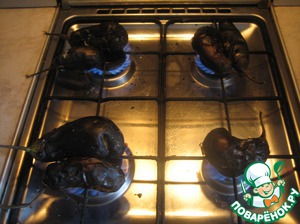 Когда баклажаны уже стали мягкими со всех сторон, а в некоторых местах даже обугленными...