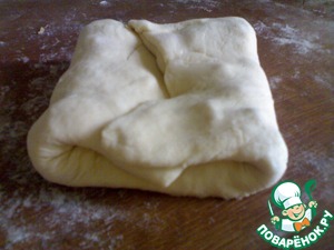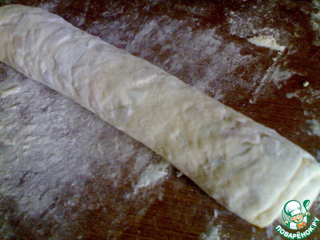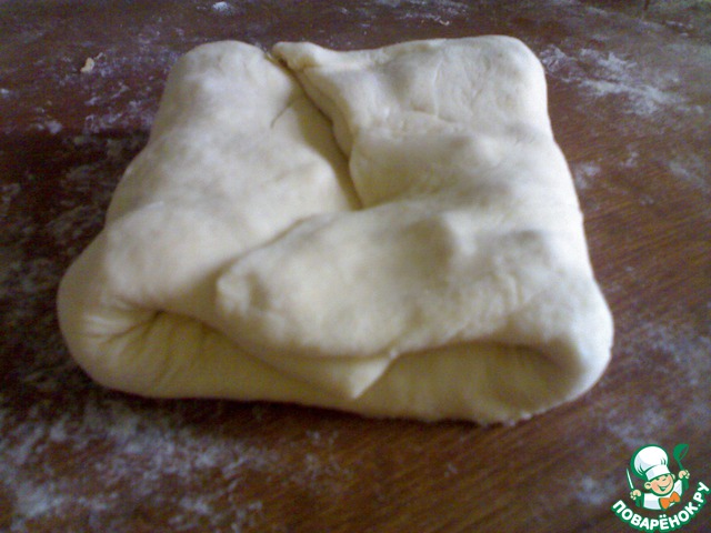 Раскатать скалкой снова в квадрат и свернуть в рулет.