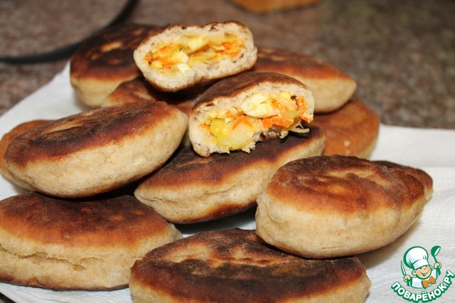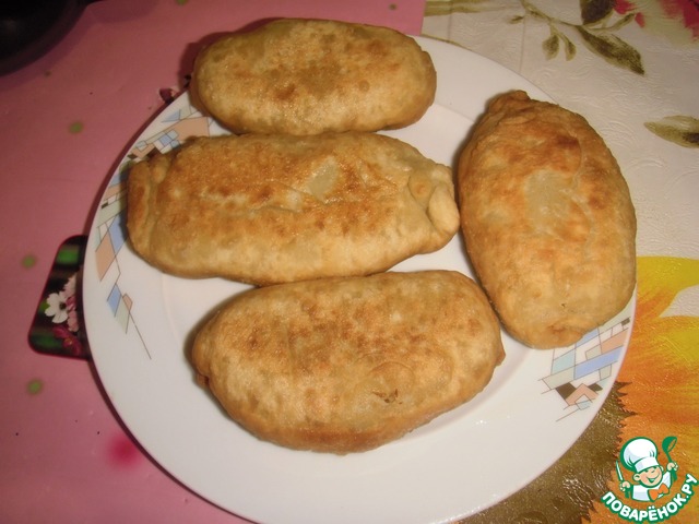 Из приготовленного теста (тесто должно получиться мягким, не липким) лепим пирожки. Затем обжариваем их на сковороде в масле.