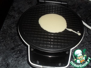8) Берем столовую ложку и выкладываем тесто. 1 ст. л. это один блинчик (а то я первый раз целых 3 ложки положила, и у меня все повылезало за пределы вафельницы)