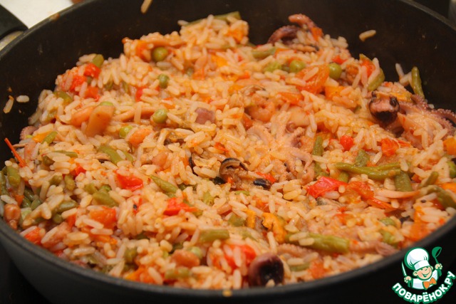 Рецепт «Валенсийская паэлья с морепродуктами и овощами»: