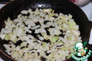 Теперь обжариваем на оливковом масле чеснок и лук до золотистого цвета