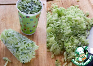 В час Х достаем порцию замороженных огурчиков (понюхаем - мммм, пахнет летом!) и, если это необходимо, режем их помельче. Кстати, это гораздо проще сделать, чем со свежими огурцами. |