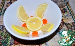 Нарежьте лимон и выложите по краю формы, на дно я положила толстый ломтик, чтобы донышко было толстое. -