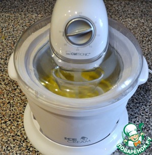 Ставлю на 15 минут для замораживания. Если у вас нет такого прибора, то выложите смесь в металлическую кастрюльку или контейнер, ставьте в морозилку и через каждые 25 минут перемешивайте вилкой в течение 2 часов, все зависит от объема: чем меньше объем, тем быстрее смесь кристаллизуется.