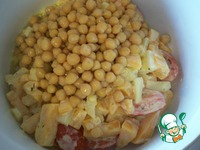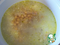 Взять кастрюльку, в которой будет готовиться суп, переложить туда обжаренные овощи, выложить туда же отваренный нут. |