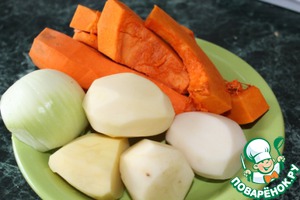 Осень - пора овощей, тыква - очень полезный и красивый ингредиент для многих блюд. Предлагаю Вам побаловать себя вот таким тыквенно-картофельным блюдом!