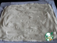 Застилаем противень бумагой и выкладываем тесто, разравниваем и выпекаем 10-12 мин. при 180-200 град., не передерживайте бисквит в духовке, иначе будет ломаться при скручивании. |