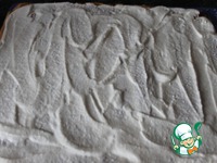 Готовый бисквит переворачиваем на коврик или полотенчик льняной, посыпанный сахарной пудрой. |