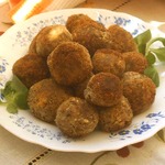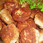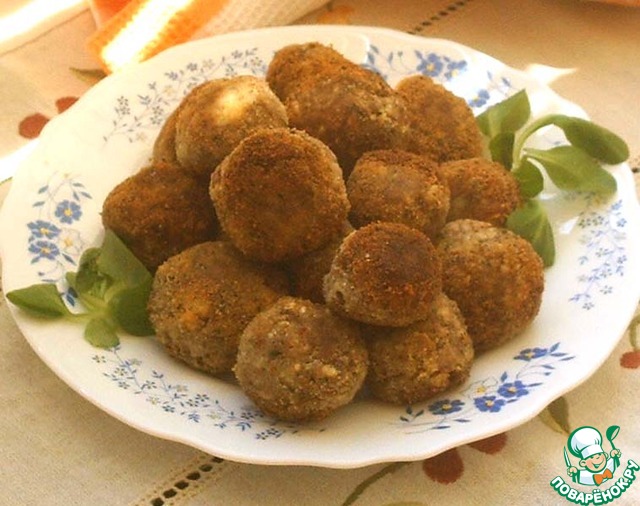 Из полученной массы делаем небольшие круглые польпетты, обваливаем их в сухарях и обжариваем со всех сторон.