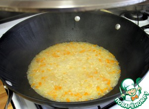 Добавляем рис и готовим, помешивая, 1 минуту.