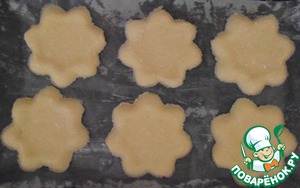 Полученное тесто раскатать слоем в толщину с палец. Разделить формочками на коржики.