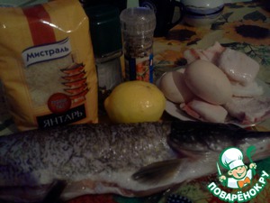 Рис отварить до полуготовности, щуку очистить, тщательно промыть