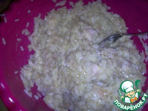 Приготовить фарш: рыбу и сало пропустить через мясорубку, добавить к ним рис, яйца, соль, специи
