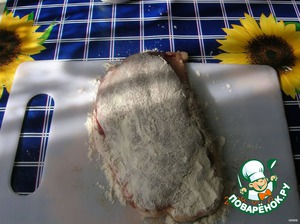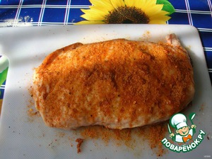На половину филе разложить сырную начинку, накрыть второй половиной, хорошо прижать.
