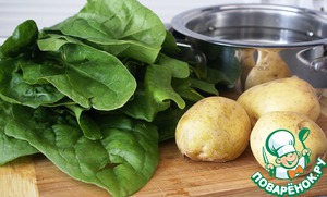 • Подготовить продукты: картофель хорошо помыть, он будет готовиться в кожуре. Тщательно промыть листья шпината от песка.