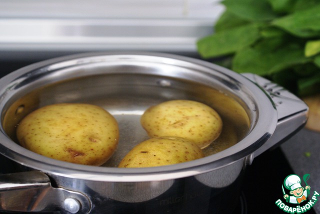• Отварить картофель в подсоленной воде. Оставить остывать.