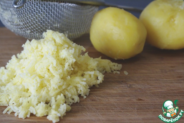 • Очистить от кожуры картофель и еще теплым протереть через сито.