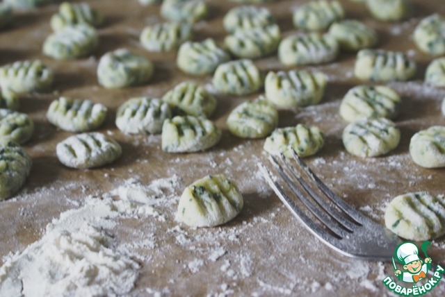 • Чтобы придать ньоккам рельефность, итальянцы используют специальную ребристую доску. С этой задачей отлично справляется и обычная вилка. На каждый кусочек нужно слегка надавить сверху до получения рисунка.