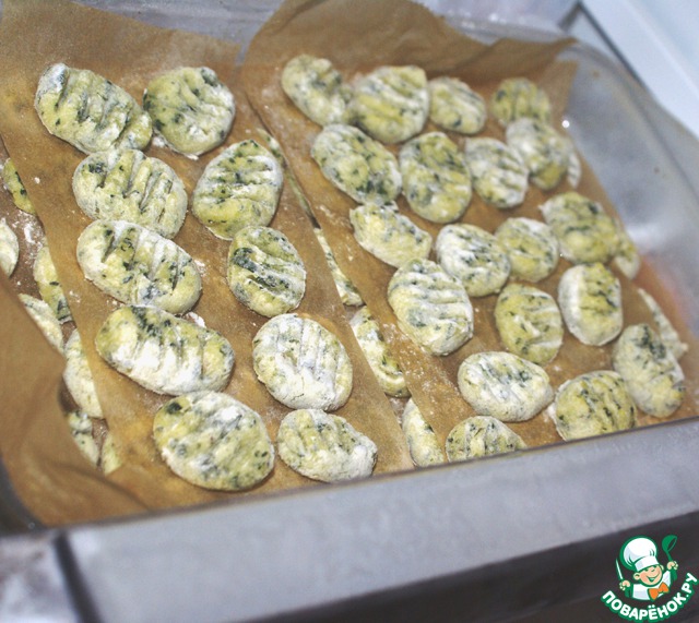 • Когда последняя штучка будет готова, ньокки нужно оставить на воздухе около часа, чтобы они подсохли.