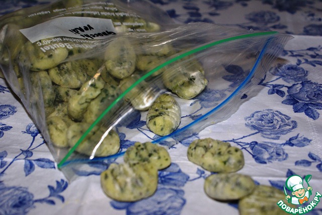 Gnocchi verdi. Ньокки - это такие итальянские клецки. Их делают и из кукурузной, и из каштановой муки, и из тыквы, но чаще всего все-таки из картошки. Продукты достачно простые, но приготовление требует некоторой возни, поэтому есть смысл заготавливать ньокки впрок. И тогда, если однажды вечером у вас не окажется времени для готовки, а будет хотеться чего-нибудь быстрого и вкусного и желательно интересного, имея такую заготовку в морозильнике, вы сможете легко приготовить настоящее итальянское блюдо за считаные минуты.