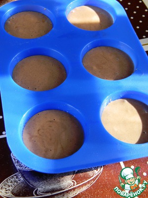 Яйца взбить с сахаром, добавить муку, разрыхлитель и какао, перемешать, выложить в формочки. Выпекать до готовности, температура 180-200гр.