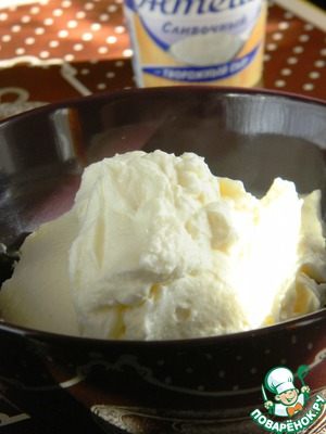 Взбить сливки в пышную пену,добавляя сахар. Добавить творожный сыр(я брала "Альметте" сливочный). Взбить пару секунд на маленькой скорости, чтобы соединить сыр и сливки.