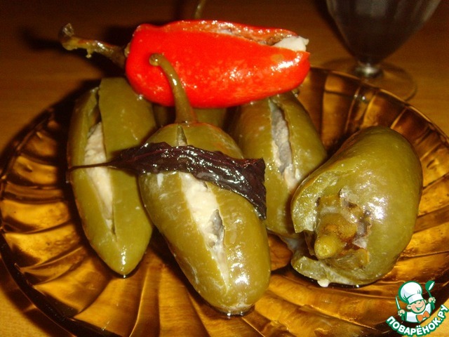 Описание: Viagra Naturale. Неделю назад прилетала в гости подруга. Из Италии. Сидели, смеялись, болтали о жизни под бокал хорошего итальянского вина и она рассказала моему мужу, большому любителю красного жгучего перца, о том, как ее свекр готовит из него закуску. Ну как тут не выспросить подробности? Но, к сожалению, подробностей она не знала. Открыли Интернет и нашли на одном итальянском сайте этот рецепт. Правда, мариновались там маленькие круглые перчики без хвостиков и начинялись баночным тунцом или селедкой. Рецепт я повторила в точности, только заменила круглый маленький перец на привычный длинный. И вот я представляю вам просто чумовую закуску к крепким напиткам - острый чили с селедкой. Ну а почему же Viagra Naturale, спросите вы? Отвечаю - так в Италии называют красный жгучий перец. Самое то для холодных и пасмурных осенних вечеров! ))