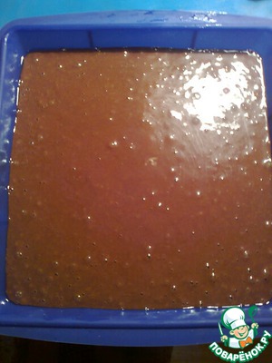 Выливаем наше тесто в смазанную форму (для микроволновки, у меня силиконовая квадратная размером 20х20 см) и ставим в микроволновую печь на 5 минут при мощности 800.