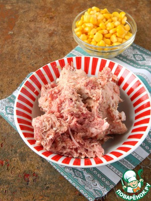В фарш добавить томаты и кукурузу, дать покипеть, чтобы испарилась лишняя жидкость.