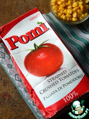 Также нам понадобятся протертые томаты, я брала томаты марки Пармалат.