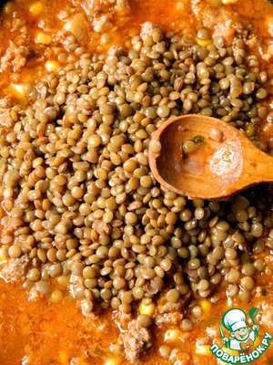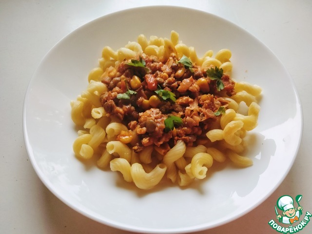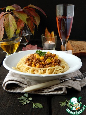 Рецепт «Спагетти с мясным чечевично-кукурузным соусом»: