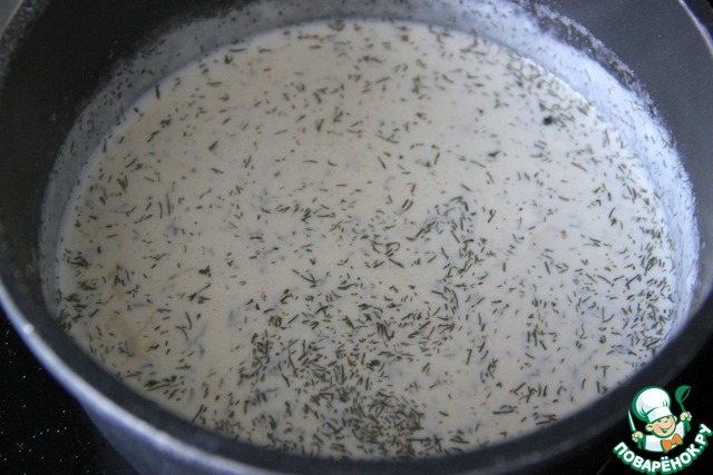 Приправить солью, перцем, мускатным орехом и зеленью.