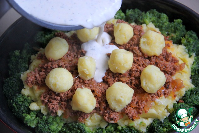 Рецепт «Мусака с брокколи и картофельным пюре»: