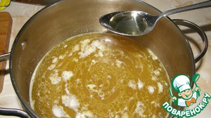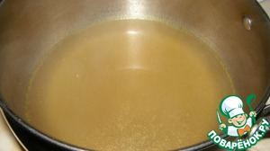 Смешать с бульоном растопленное сливочное масло, 4 столовые ложки растительного масла