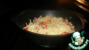 В рис ввести бульон и поставить в разогретую до 200 градусов духовку