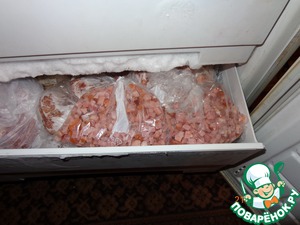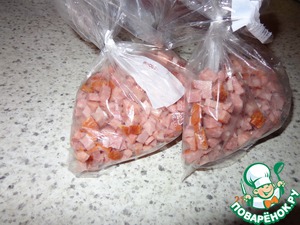• Укладываем в морозильную камеру. Пусть наше колбасное ассорти ожидает своего часа в морозилке.