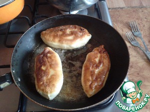 Готовые пирожки выкладываем вниз швом на раскаленную с маслом сковороду.