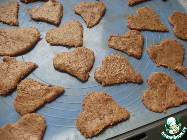 Итак, тесто охладилось. Раскатаем его в пласт толщиной 4 мм, но можно и потолще. И вырежем формочкой фигурки, у меня были сердечки.