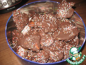 Растапливаем шоколад на водяной бане и окунаем туда наши прянички, выкладываем на фольгу и ждем, пока шоколад затвердеет.