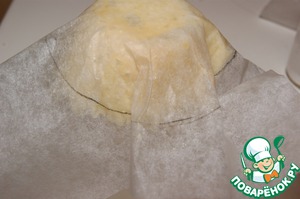 Снять бумагу и руками сделать складочки (всё это делаем быстро, чтобы не застыл сыр) и дать корзиночке хорошо остыть.