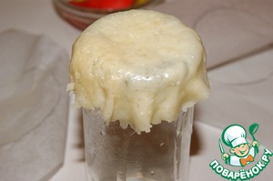 Дать ему чуть застыть и вместе с бумагой перевернуть растопленный сыр на стакан, перевернутый вверх дном (4 см в диаметре).