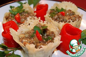 Рецепт «Баклажанная закуска в сырной корзиночке "Римские каникулы"»: