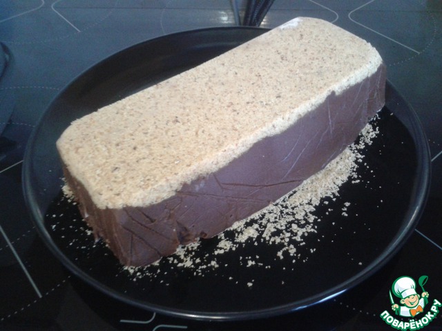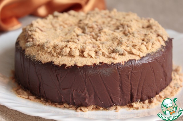 Аккуратно залить остывшую шоколадную смесь. Когда немного застынет, сверху присыпать крошкой.
