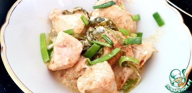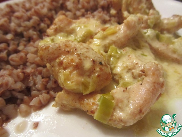 Нежное куриное мясо в сливочном соусе с пикантным вкусом лука-порея.