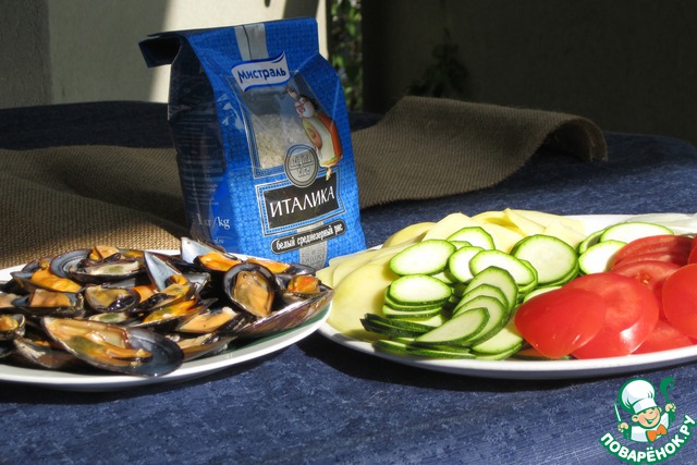 Ингредиенты для «Тиелла из риса, картофеля и мидий»: