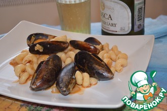 • Отделите моллюска от верхней створки раковины и оставьте нижнюю ее часть, дайте стечь жидкости. Когда закончите очистку мидий, оставшуюся на сковороде жидкость отфильтруйте - она еще понадобится.