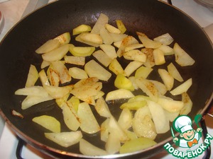 • Обжарить картофель на оливковом масле до появления румяной корочки.