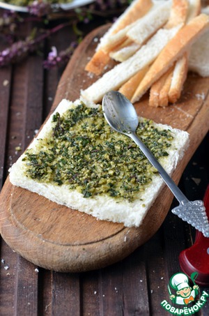 Для приготовления соуса нам понадобится большой пучок базилика, который необходимо помыть и оборвать листики. Измельчить их вместе с сыром в блендере, добавляя при этом немного растительного масла.